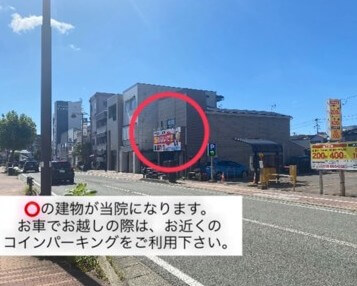 当院は「秋田駅」から車で7分に立地しています。徒歩1~2分にコインパーキングもあり、通いやすくなっております。